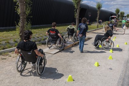 Des innovateurs, élèves ingénieurs ou professionnels, présentent leurs dernières créations d’aide à la mobilité. Des lycéens expérimentent la situation du handicap à travers des jeux, comme le cécifoot, qu’ils découvrent les yeux bandés. Des personnes valides et invalides testent des fauteuils roulants et autres équipements. Nous sommes à l’ENIM sur le Technopôle messin, qui accueille pour la troisième année consécutive le Challenge Handicap et Technologie.