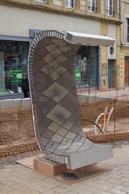 L’alcôve prendra place le long de l’îlot végétalisé en cours d’installation à l’entrée de la rue Serpenoise côté République. Les passants pourront s’y assoir et y écouter des faits divers et autres anecdotes liées à la vie de la rue, enregistrées en trois langues. Cet élément de mobilier est fabriqué en HPL, pour Hight Pressure Laminate - stratifié haute pression en français - composé de kraft et de résine compactés -, « un matériau adapté aux espaces publics extérieurs », explique Bertrand Renaudin, architecte et cogérant de l’agence BKBS, concepteur de la Serpentine.