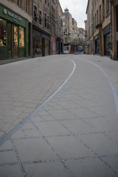 À Metz, la sculpture urbaine inspirée de la légende du Graoully, qui agrémentera bientôt l’axe Ladoucette Serpenoise, dévoile un peu de sa superbe. Alors que ses courbes ont commencé à serpenter sur le pavé des deux artères commerçantes, cet été le dessin de ses écailles est apparu en creux, gravé au sol de la rue Ladoucette.