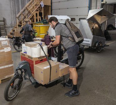 Installée dans une halle du tiers-lieu Bliiida, l’équipe des Coursiers de Metz prépare tous les matins ses tournées de livraisons à vélo. Les camions des gros clients de l’association - les transporteurs DB Schenker et DHL, le fournisseur de matériel de bureau Lyreco - déposent leurs palettes de marchandises dès 7 heures du matin. Pour l’acheminement de ces dernières au centre-ville, les cinq cyclistes prennent le relais.